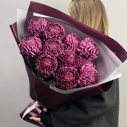 Букет "Изобилие" из 11 винных хризантем Бигоуди