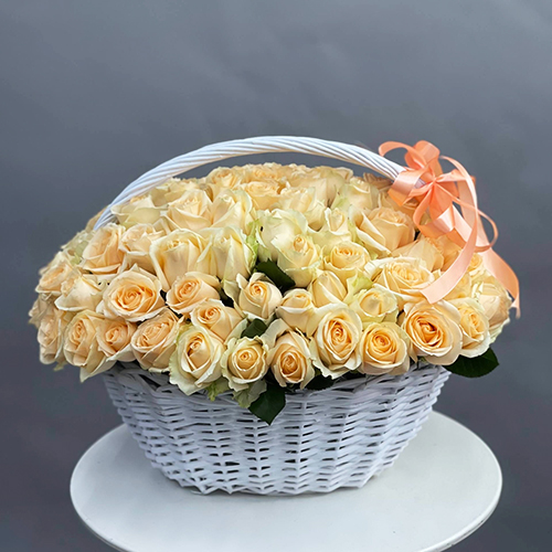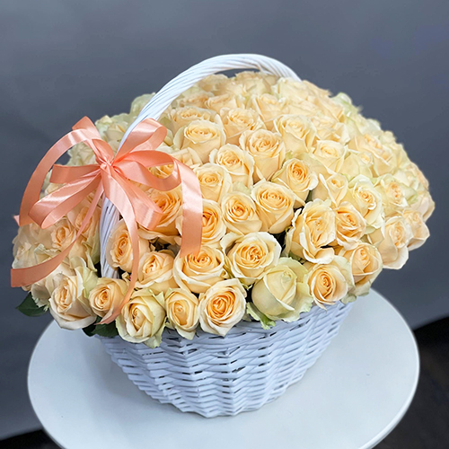 Композиция в корзине из 101 розы Аваланж (50 см)