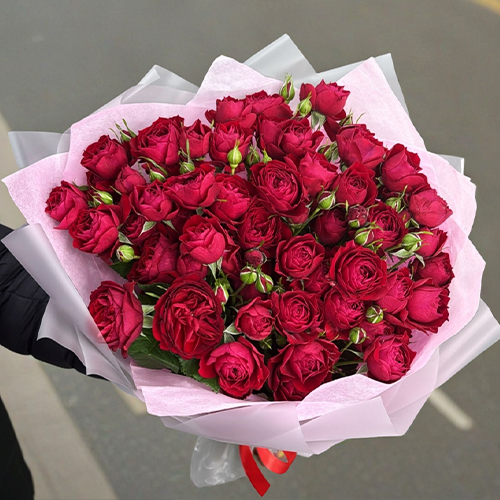 Букет из 17 красных кустовых пионовидных роз (50 см)
