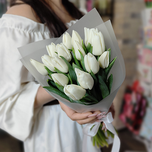Букет из 15 белых тюльпанов